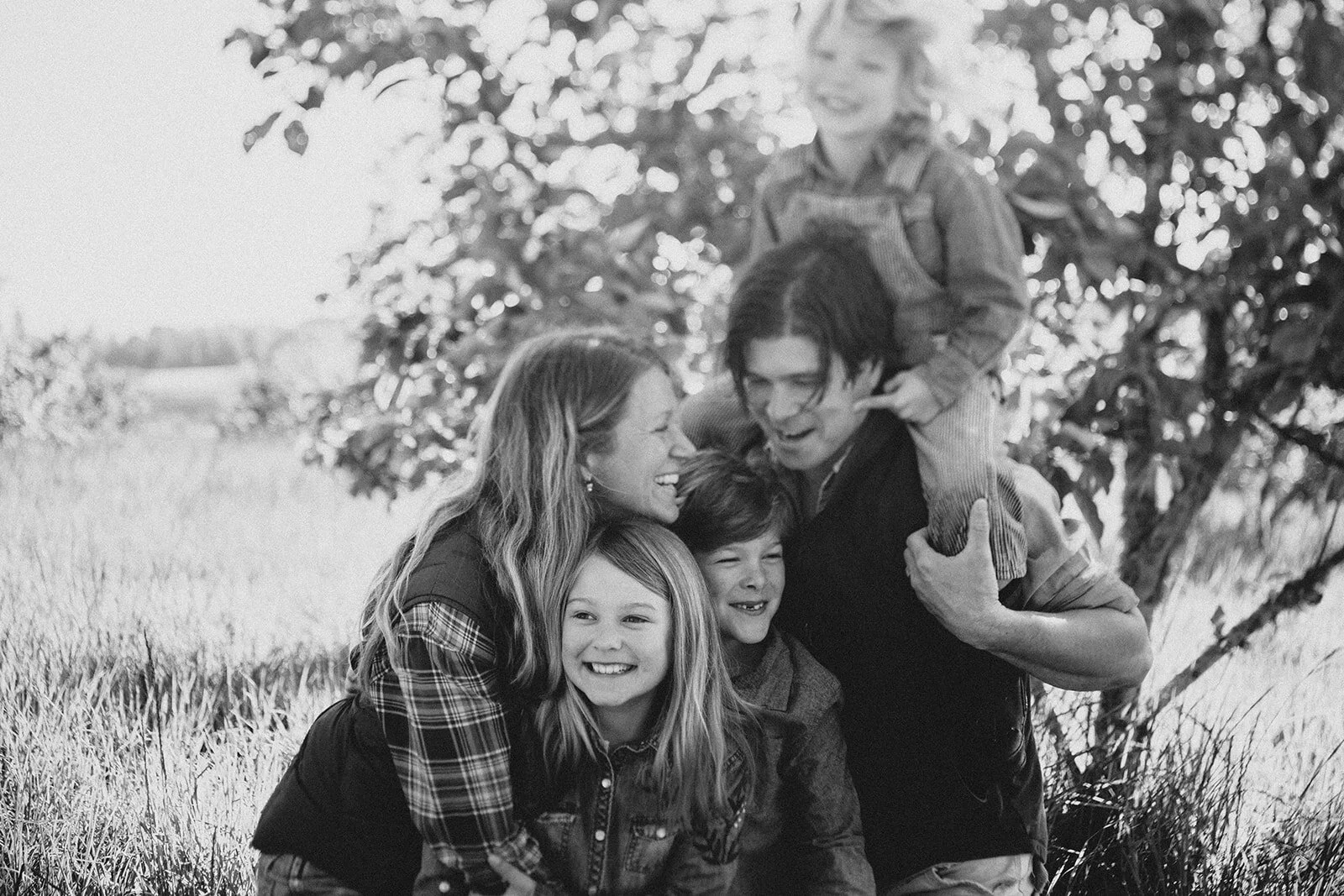 My grandparents began farming high up on a windswept basalt laden plateau in Eastern Washington. I was raised moving cattle by horseback, growing wheat, driving semi, and fixing fence with my four brothers. Contributing to my family’s livelihood gave me immense pride and by high school I could run the full wheat harvest with my siblings. I distinctly remember looking up from the combine seat and seeing each of us doing some form of work on the ranch—from the summer fallow dust to the hay ground to the grain truck hauling up the dirt road. It felt profound and also necessary for a family to move together with the land, sky, and intensity of the seasons. Peak Light Cider was born out of a desire to work side by side, cultivating a deep curiosity of land stewardship and environmentally conscious agriculture. Our farm brings a family enterprise spirit with our kids joining us in all parts of orchard care and cider production. Many days there is a moment just before sunset – the shadows are at their length, the breeze coming to the island through the notch in the west hills dies down, and the orchard pauses after a day of work. I can feel the breathing of the land, and all living creatures it holds. This is peak light time. We rejoice.